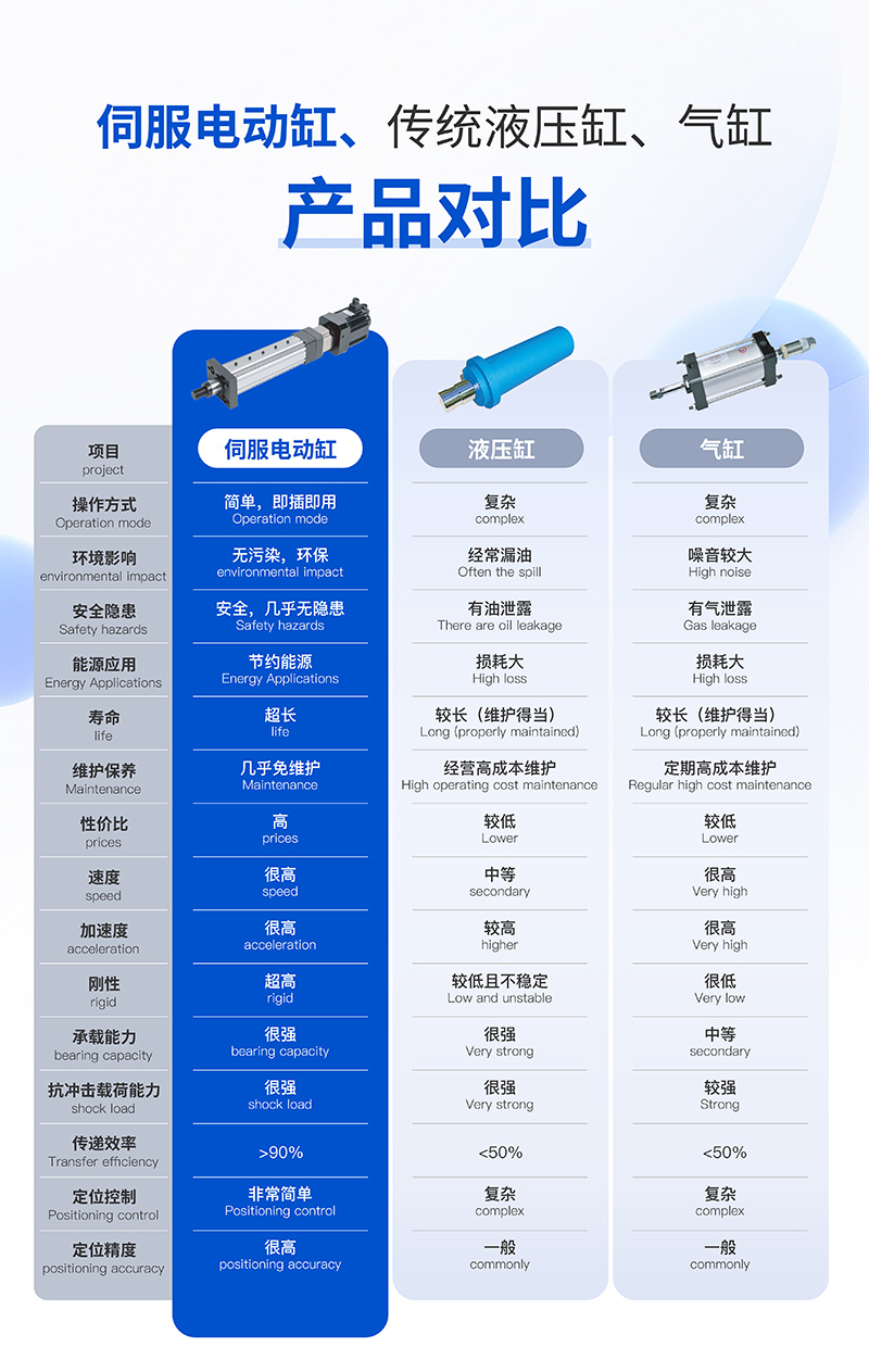 电动缸节约能源,液压缸和气缸损耗大;