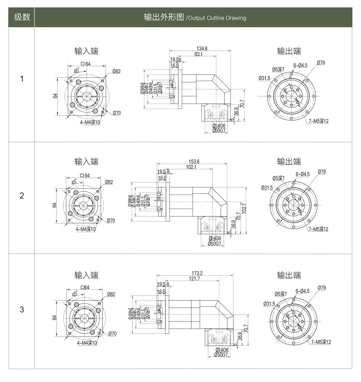 此款直角行星减速机负载极高,运行时十分安静,采用盘输出。